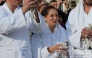 После этого прихожане церкви с хоругвями и иконами прошли крестным ходом на берег моря, где все желающие под присмотром спасателей МЧС и врачей смогли пройти обряд омовения в холодных водах Черного моря, а затем согреться горячим чаем с теплой домашней выпечкой.